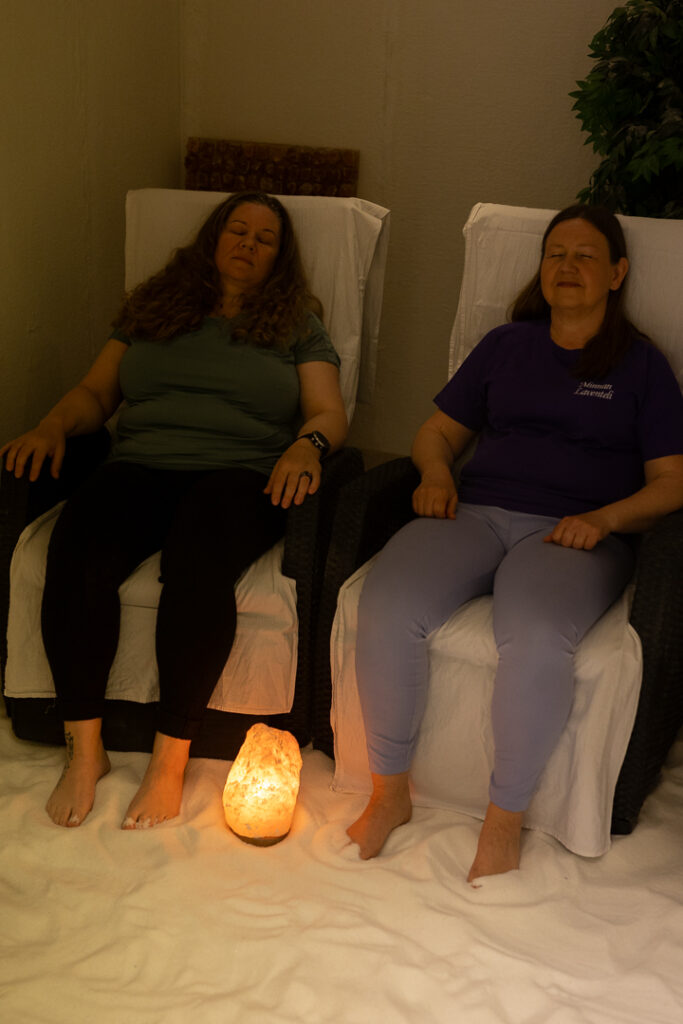Hoidon aikana voit vain rentoutua – tilassa on mukavat tuolit ja rauhoittava tunnelma. Myös lapset voivat tulla suolahuoneeseen aikuisen kanssa, ja heille on oma hinnoittelu. Hoito on täysin luonnonmukainen ja kivuton.